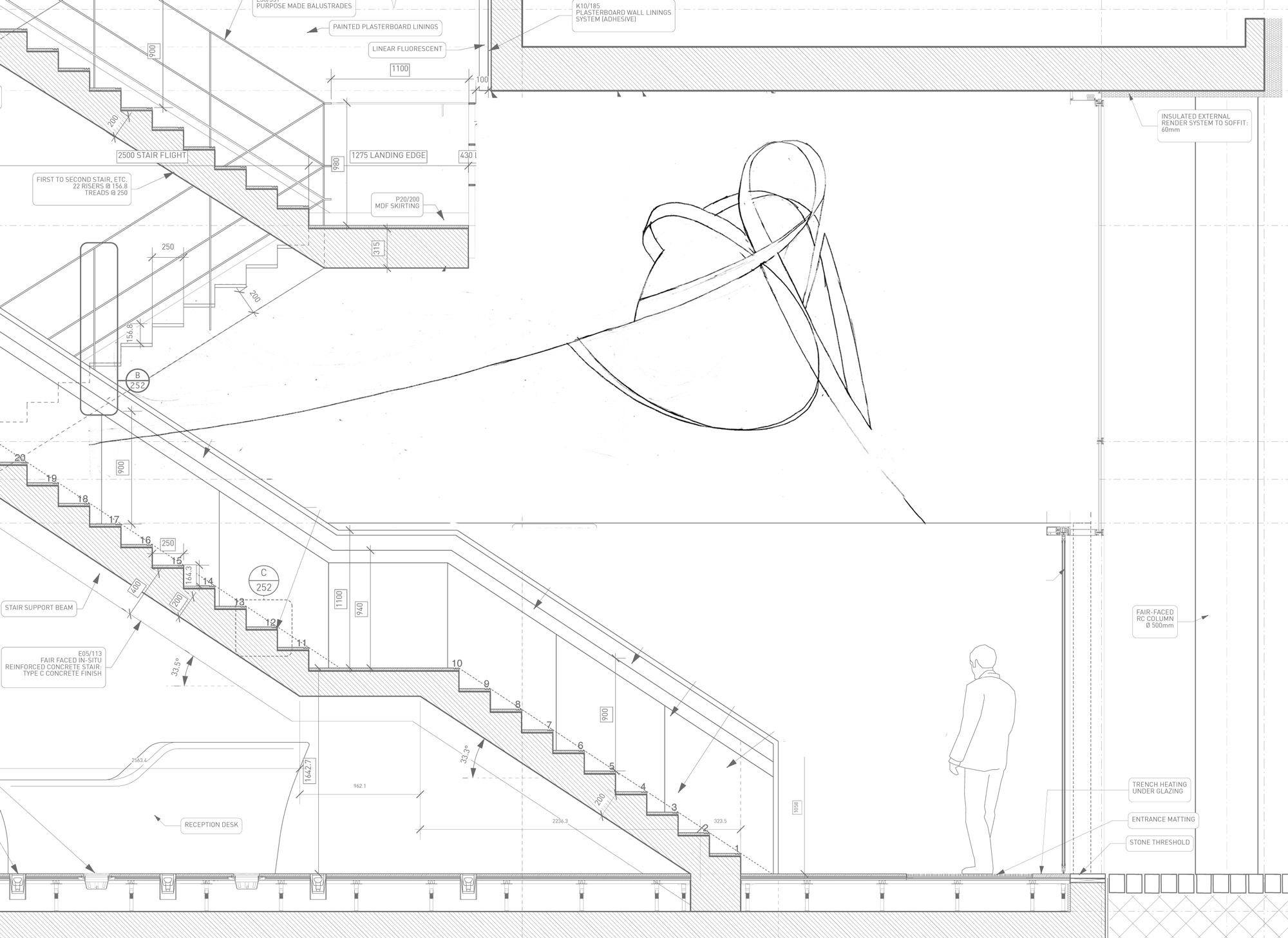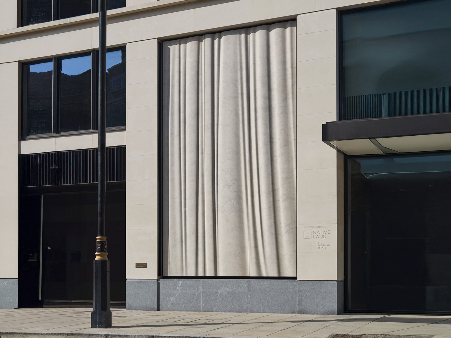 , Carved limestone wall sculpture for Native Land inspired by drawing in Hyde Park
