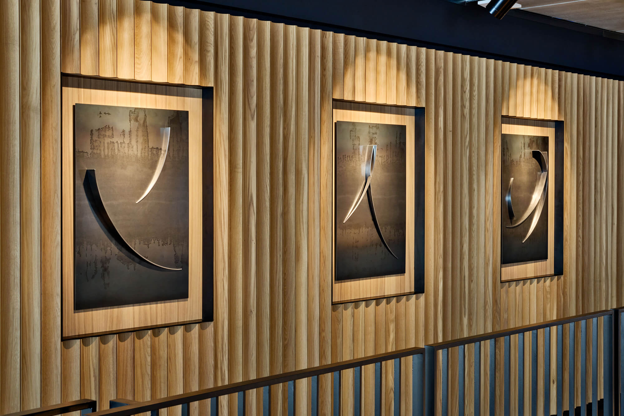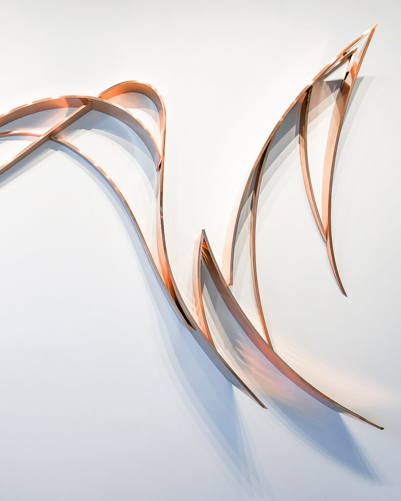 , metal wall sculptures derived from a residency with the Royal Ballet for Derwent London