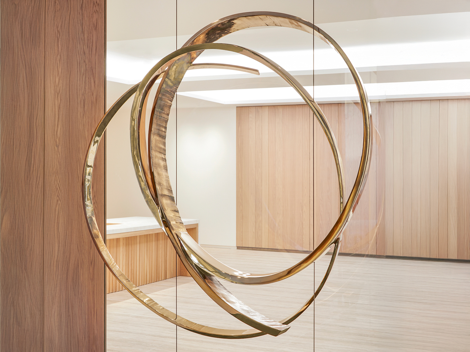 , bronze suspended sculpture for the entrance of Derwent London headquarters